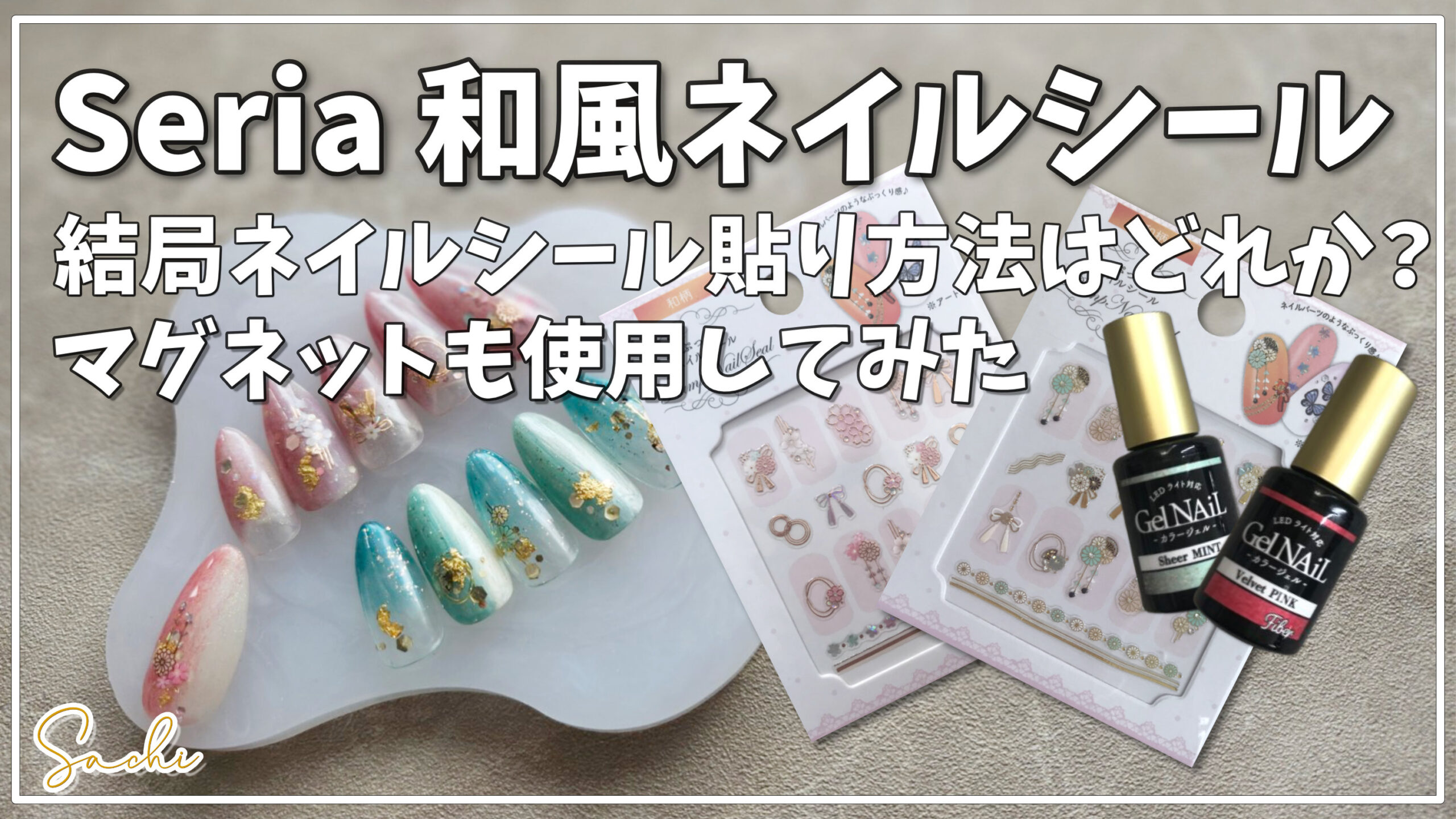 セリアジェルとネイルシールYE11231ですぐできそうな成人式・和風ネイルやってみた