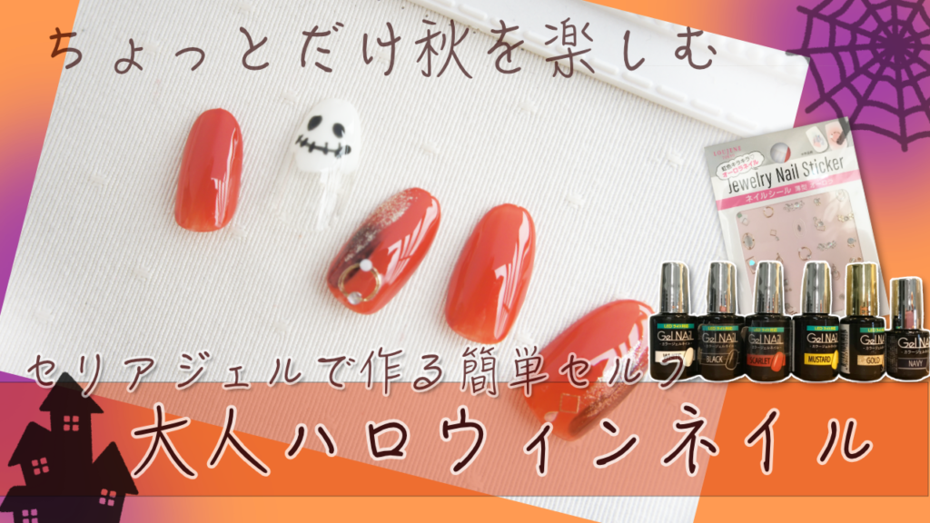 秋のしっとりハロウィンネイル(セリアジェルでセルフネイル)