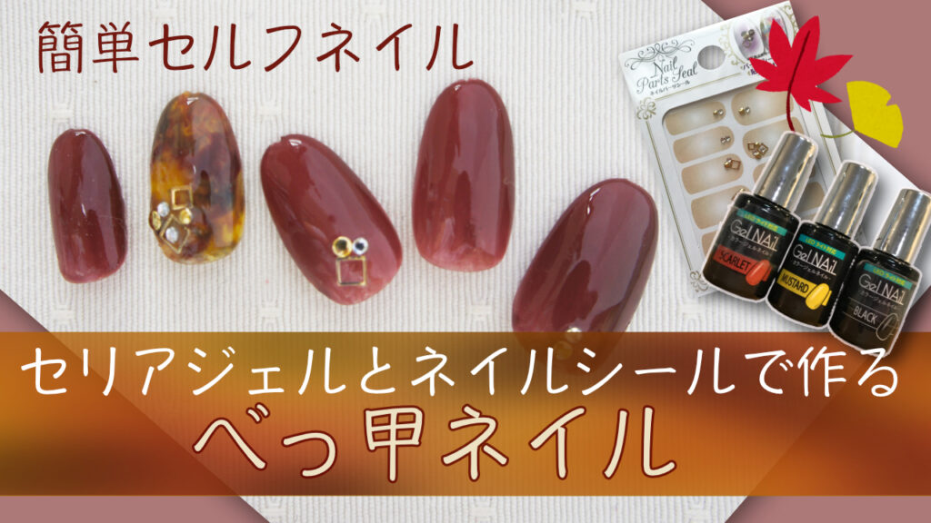 セリアジェルで秋ネイルべっ甲デザインをセルフネイル