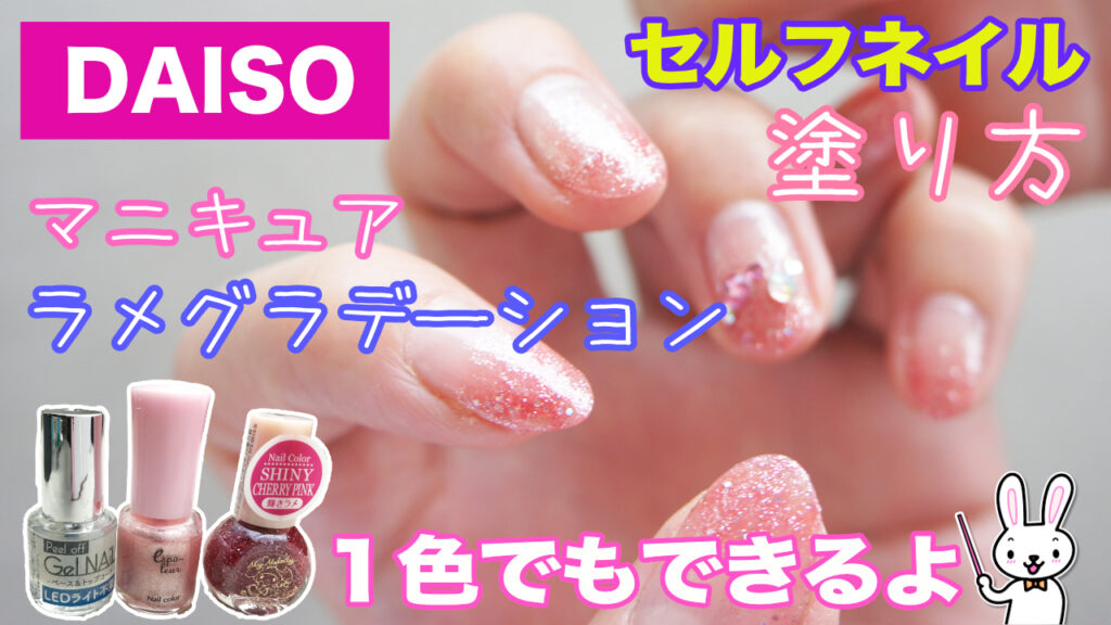 ダイソーマニキュアを使って簡単にラメグラデーションのやり方を紹介します
