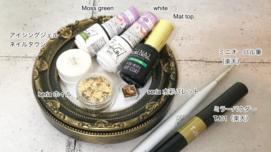base&topとか、ノンワイプトップ、ベースジェルは必須なので書いていませんが、この他にも、ライナー筆、アンギュラー筆があるといいですよ。