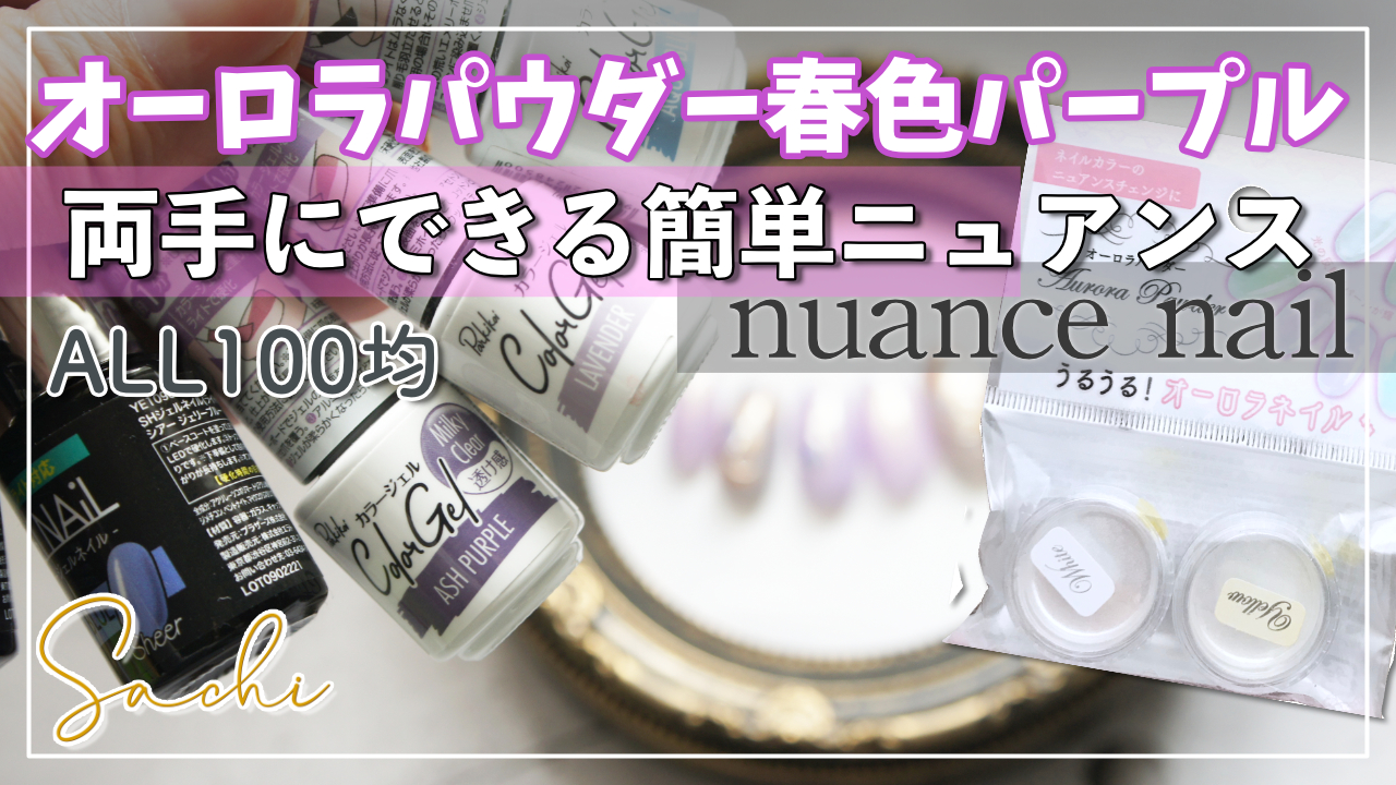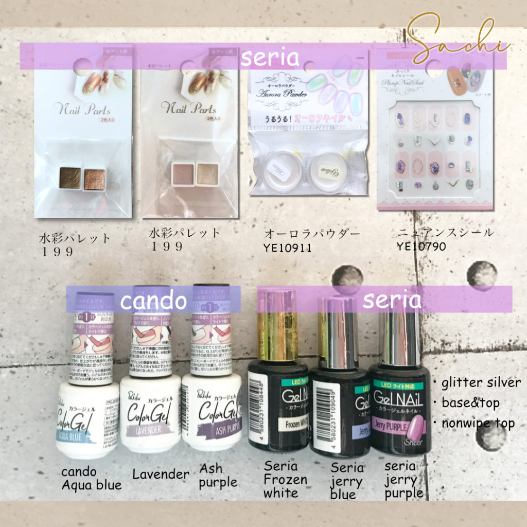 めんどくさい反対の手のネイルもこれで解消 セリア水彩パレット使用・オーロラパウダー使用