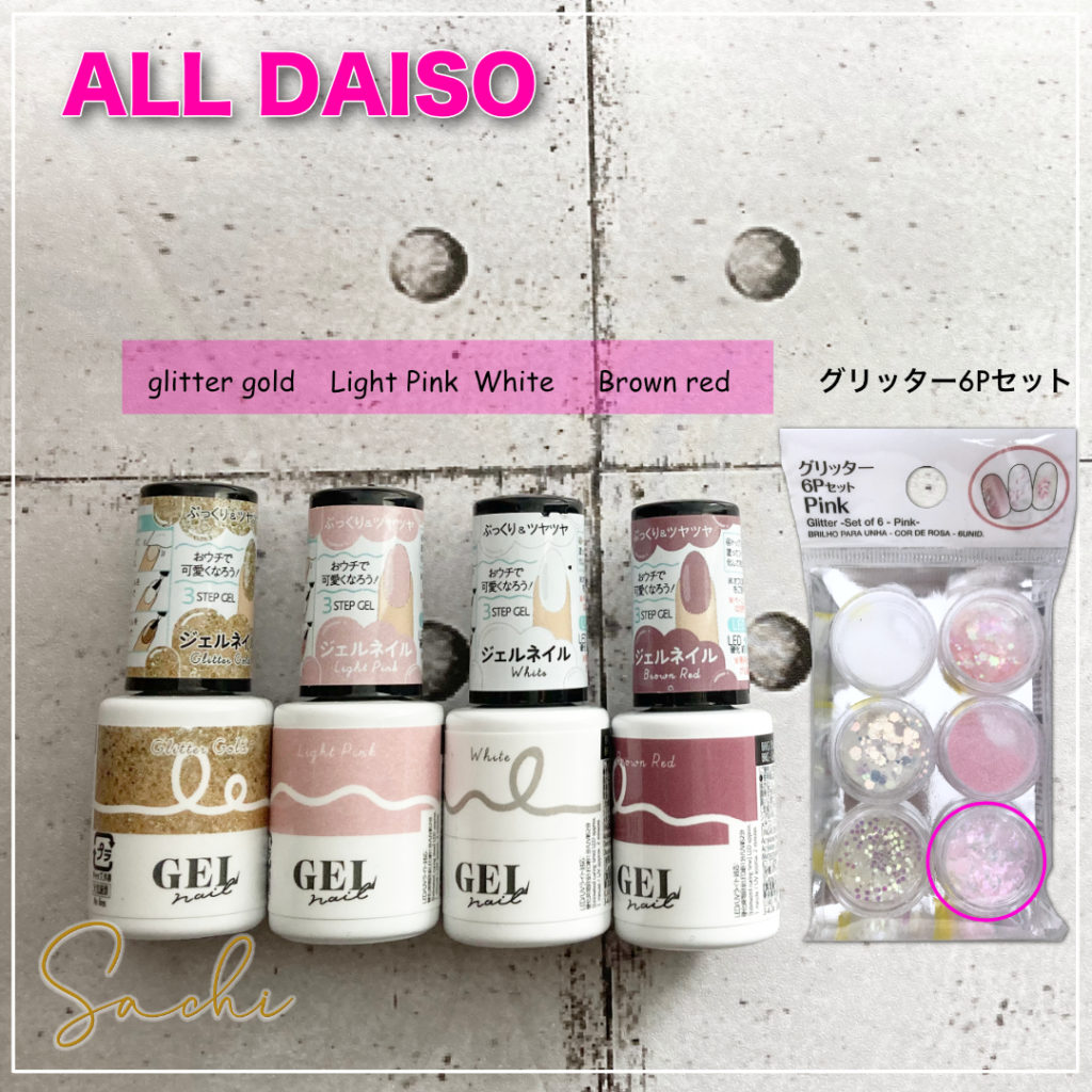 こちらはセリアさんで作ってありますが、DAISOさんのベースジェル、トップジェルで置き換えてご覧くださいませ。