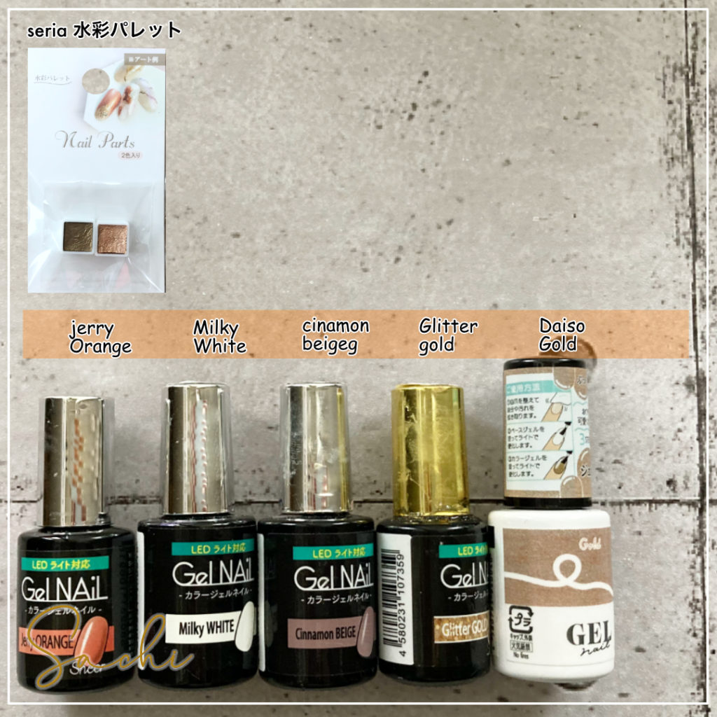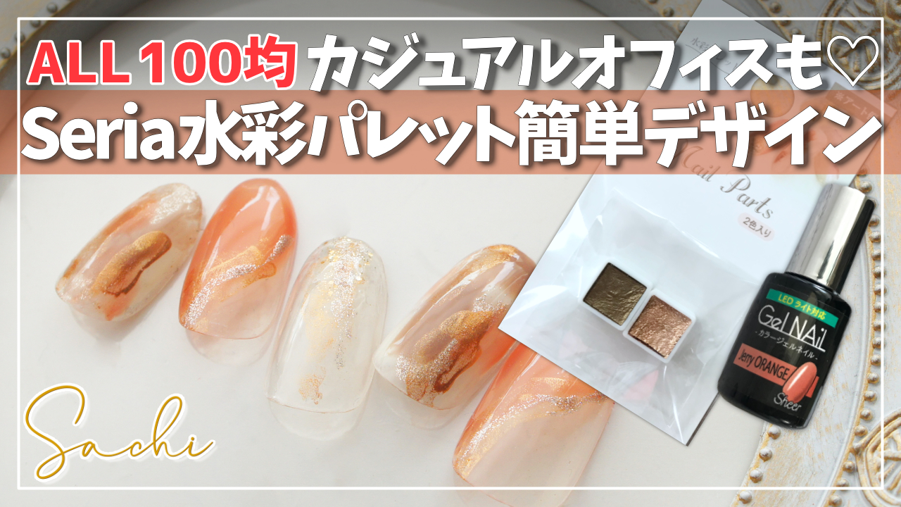水彩パレット簡単Orangeニュアンスネイル