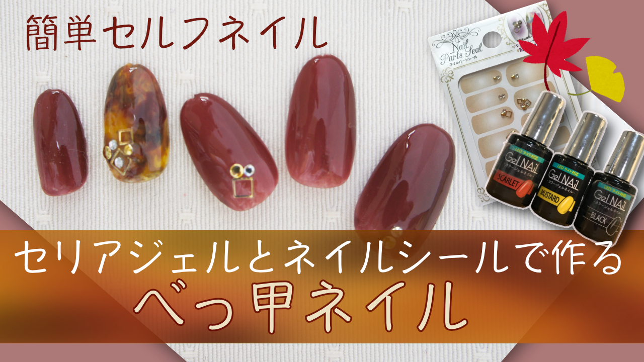 セリアジェルを使った秋カラーミックスボルドーとべっ甲ネイルで大人シックにしあげました。