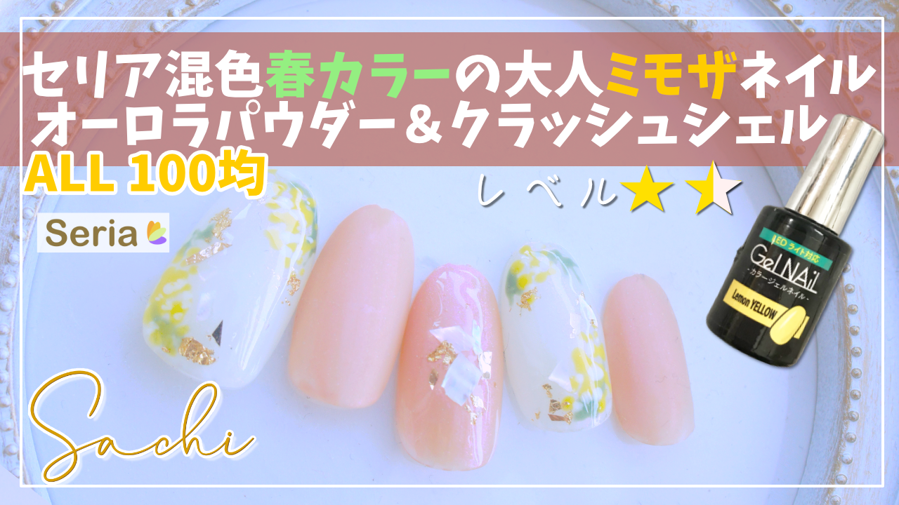 セリアジェルでミックスカラー大人春ネイル