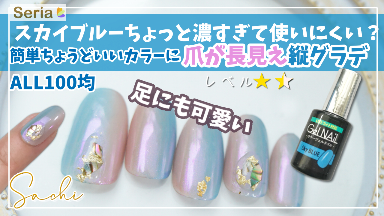 セリアジェルのskyblue濃すぎて使いにくいのでアレンジしてみた