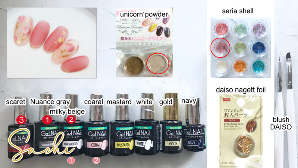 セリアジェルSCARETを透け可愛い色とチューリップ