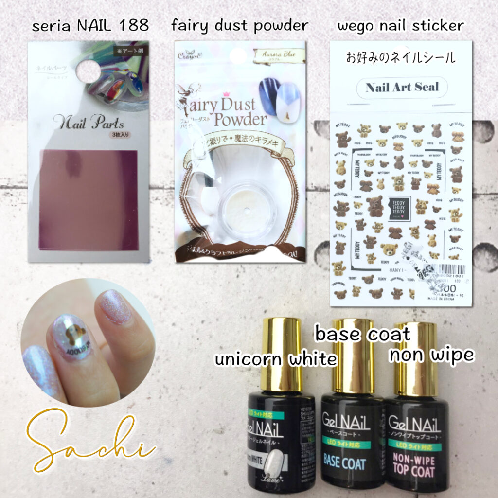 今回は新発売のセリアジェルユニコーンカラー(ユニコーンホワイト)と貼るオーロラシートを使って