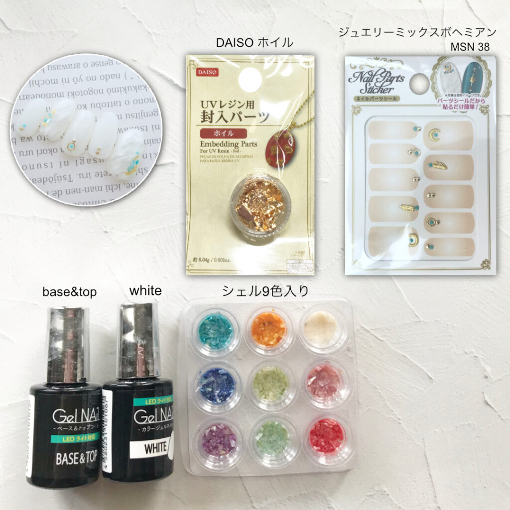シェルのコードを控えていなかったのですが、金箔以外はセリアさんで購入しました。