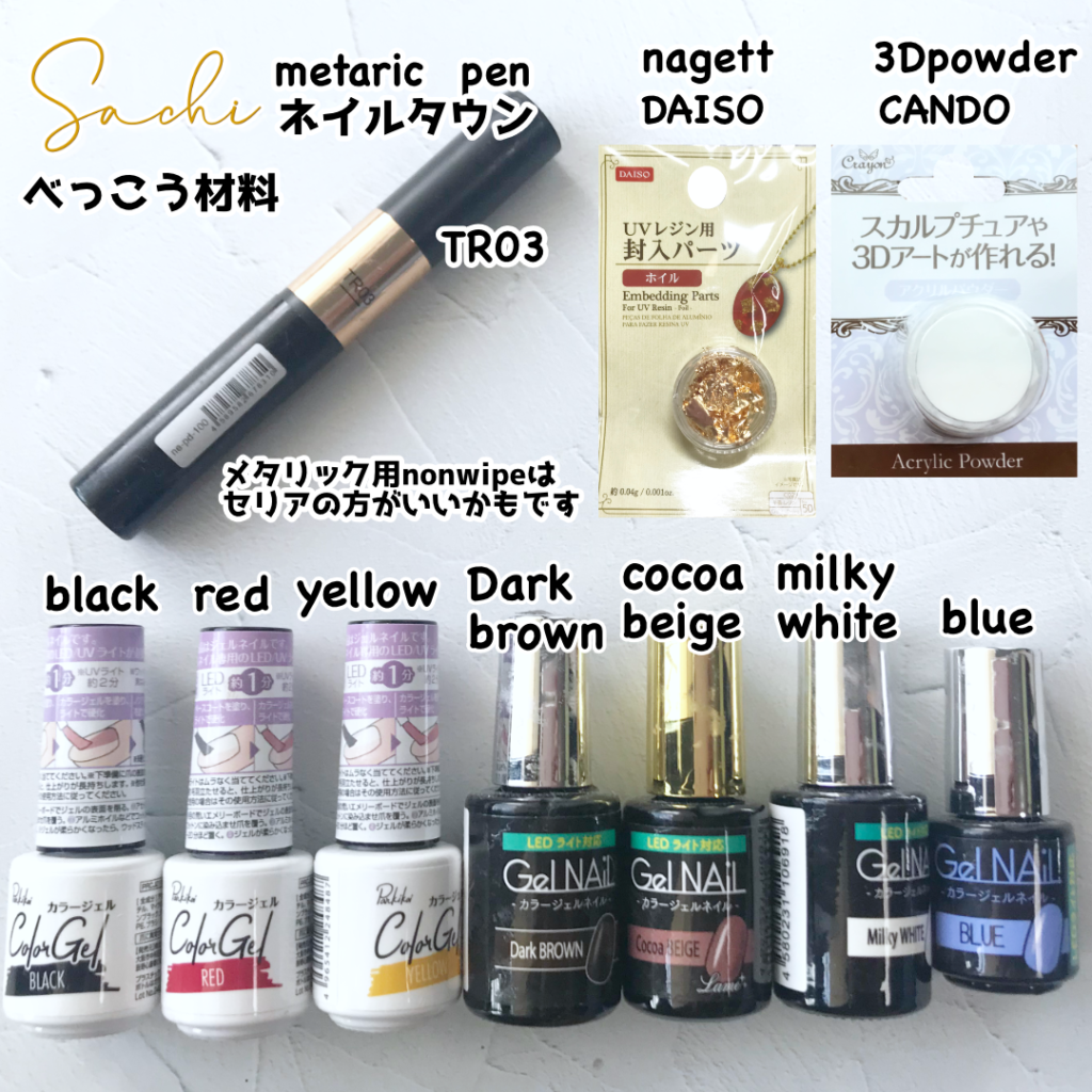 2021年秋に作れる100均CANDO/セリアジェルで深みのあるべっ甲ネイルができたよ 2021 8/28 CANDOジェル Seriaジェル 初中級 2021年8月28日 目次べっこうネイル こんにちはさっちゃんです今回は昨年よりもっと可愛く!深みのあるべっこうネイルができたのでシェアしていきますね。 材料 動画 その他 【メール便送料無料】ミラーパウダーペン ミラーネイル メタリックパウダー エアクッションペン価格:580円(税込、送料別) (2021/7/21時点) 楽天で購入 CANDOジェル Seriaジェル 初中級 CANDO べっこうネイル やり方 パルキコイ ミラーネイル 初心者 簡単 よかったらシェアしてね! URLをコピーしました! URLをコピーしました! 2021年秋に流行りそうな赤べっ甲 REDネイルをCANDOとセリアで作ってみた セリアジェルの2021秋新色が出た!手に塗って検証レビューと遊んでみた この記事を書いた人 vrose-admin 関連記事 セリアジェルを使って、テラコッタカラーを作り足に塗ってみる 2020年9月14日 セリアジェルで秋ネイルべっ甲デザインをセルフネイル 2020年9月14日 セリアジェルで秋カラー&くすみを作る8色 2020年9月14日 秋のしっとりハロウィンネイル(セリアジェルでセルフネイル) 2020年9月26日 セリアジェルと100均で作る陶器ネイル 2020年11月7日 簡単・時短・セルフネイル 秋冬新色セリアジェルを使ったダルメシアン風ネイル 2020年11月17日 CAN★DO 3Dパウダーでニットネイル 2020年12月22日 100均でクリスマスネイル 2020年12月22日 コメント コメントする 返信をキャンセルする。コメントを残すにはログインしてください。 email confirm* post date* ※スパムコメントの投稿はお控えください