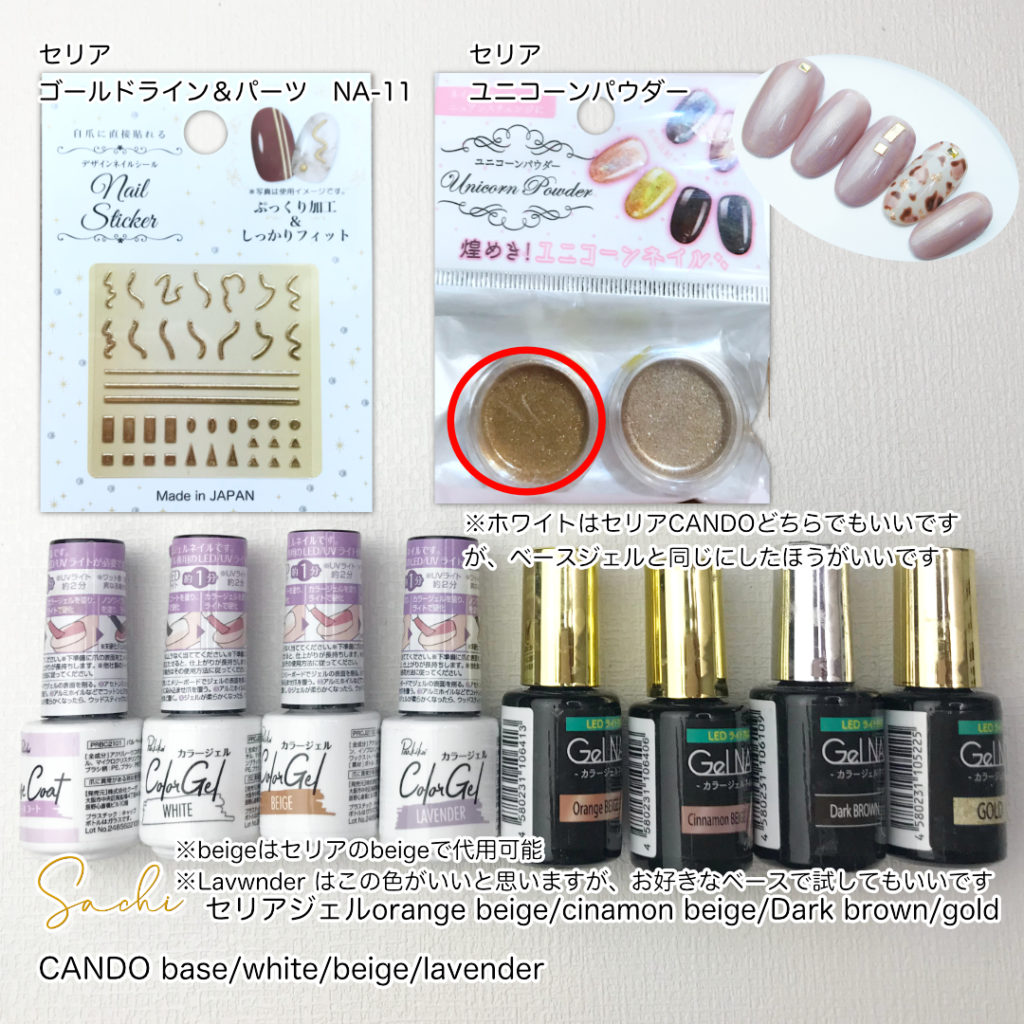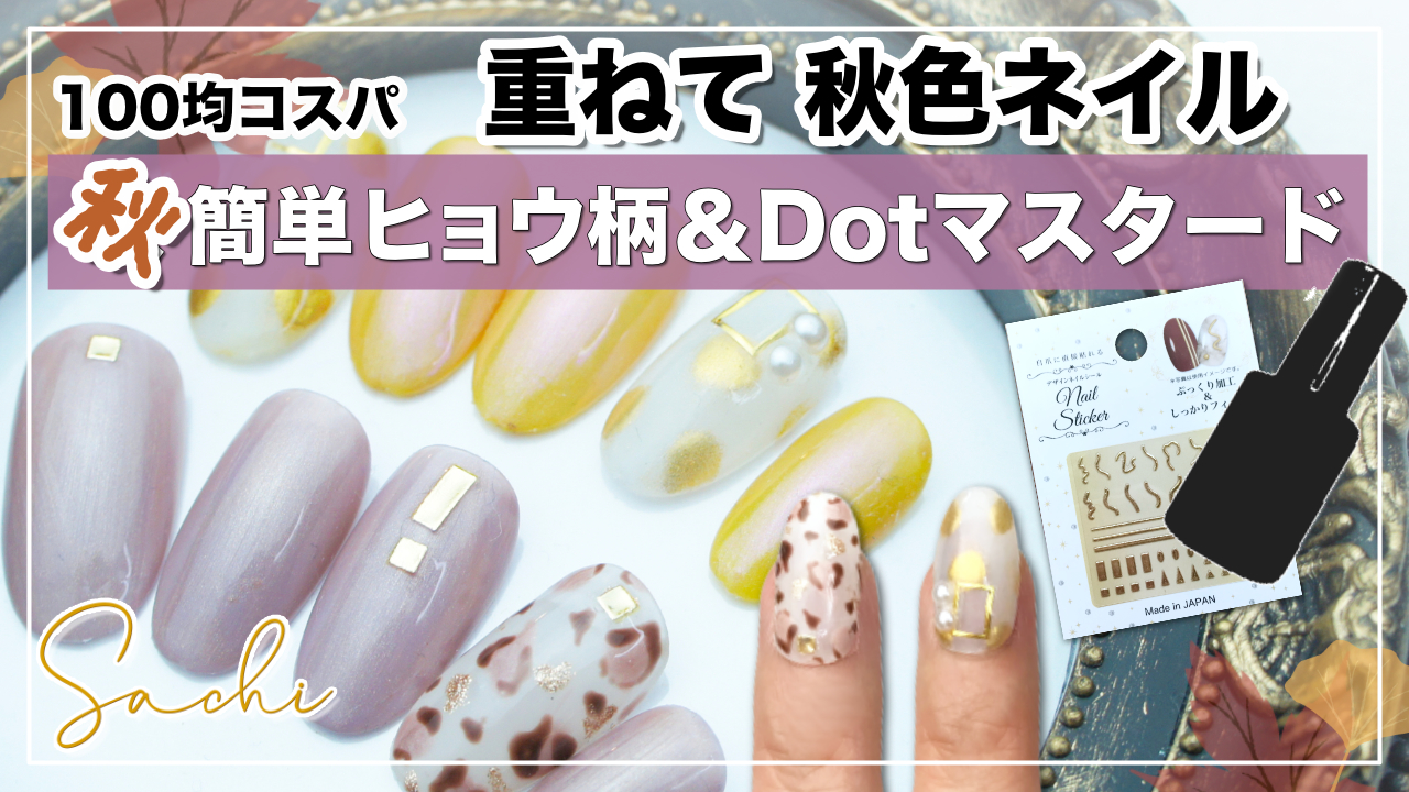 セリアジェル100均コスパ品を使って簡単ひょう柄とメタリックドット重ねるだけで秋色に変化