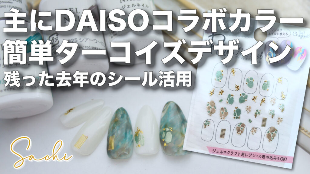 Daisoコラボジェルピーコックグリーンで可愛い簡単ターコイズネイル