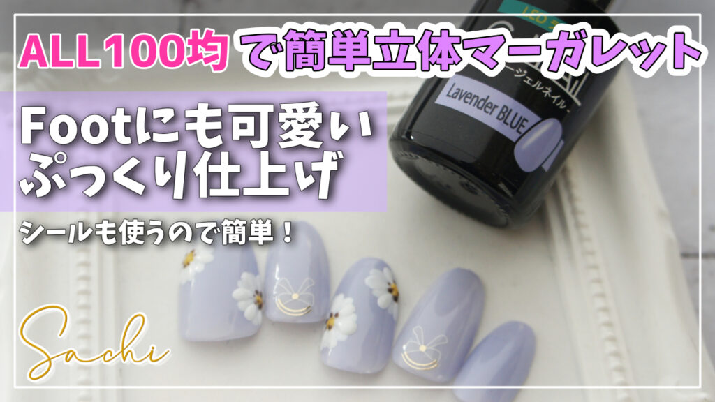 セリア Lavender blue使用 こんにちは!さっちゃんです♪今回はぷっくりマーガレットを作ってみました。100均でできるので、ぜひトライしてみてくださいね♪ 材料 動画 Lavender Blue は足にも可愛いですよね♪ぜひためしてみてくださいね。 -