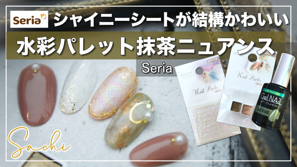 セリア水彩パレットとシャイニーシートで抹茶ミルク風ニュアンスネイル