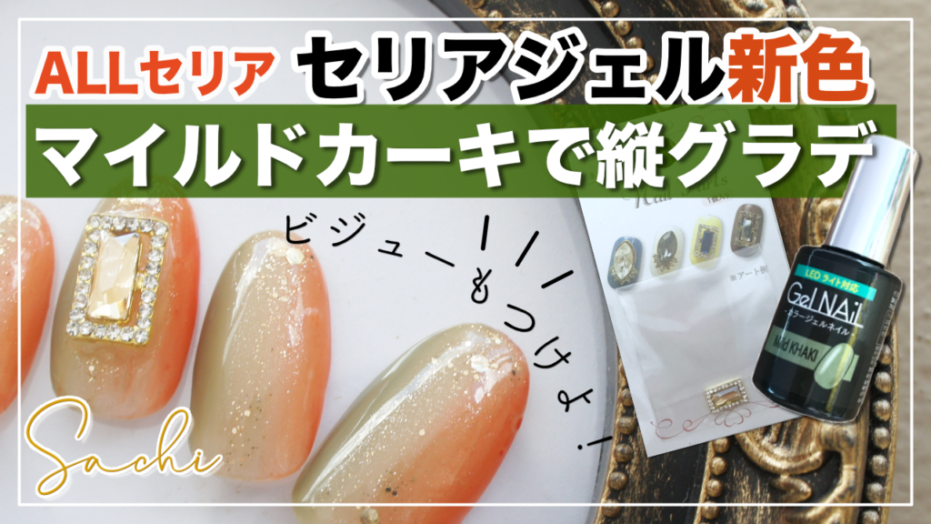 セリアジェル新色のマイルドカーキを使って秋使用の縦グラデーション
