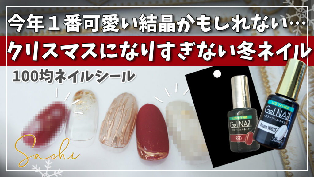 セリアジェル新色ピンクゴールドの雪のネイルシールアレンジが可愛すぎた